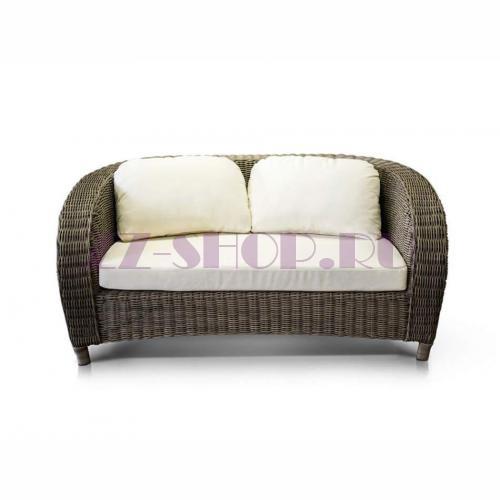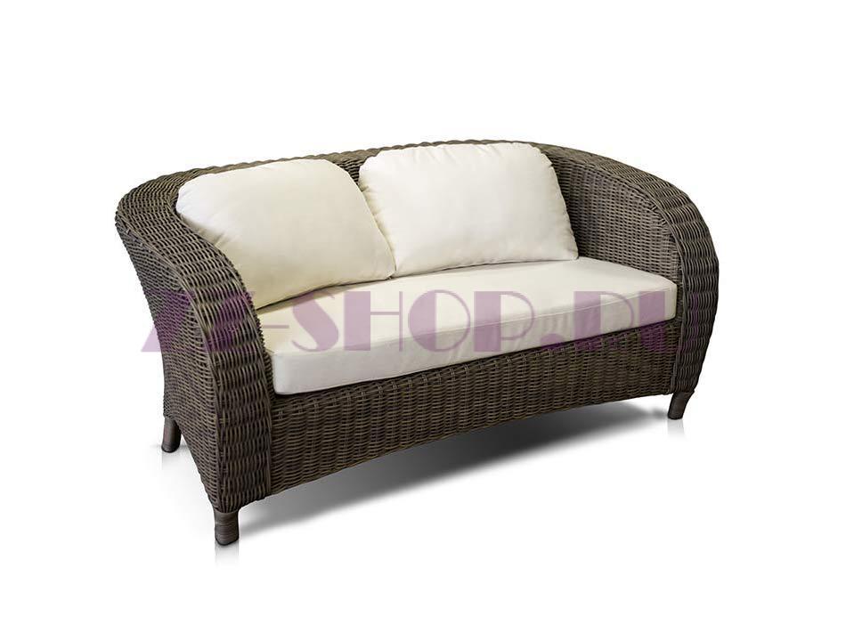 Стильный и удобный двухместный диван Римини из искусственного ротанга.Небольшие диванные подушки со съемными чехлами молочного цвета придают дополнительный комфорт.