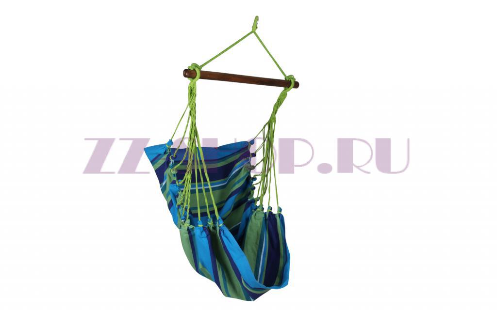 Гамак Millau 7408-1 выполнен из натурального хлопка с окраской в сине-зелено-голубую полоску.