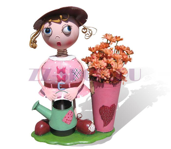 Уличная подставка для цветов - кашпо Девочка с лейкой и бабочкой на шляпе