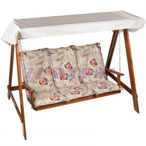 Садовые качели выполнены из массива сосны в цвете каппучино.