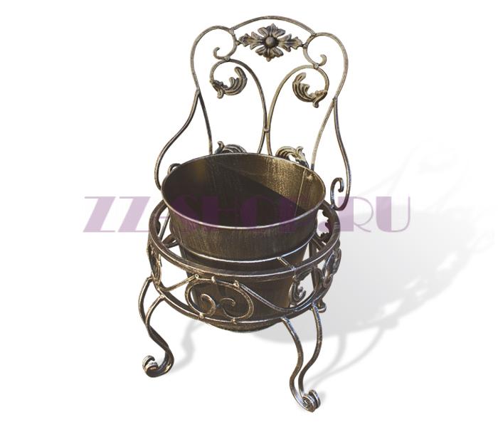 Кованая подставка для цветов Кресло с ведром, цвет Бронза