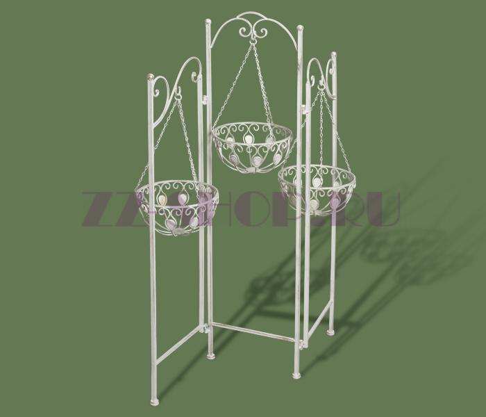 Ширма с тремя круглыми подвесными кашпо, цвет Белый