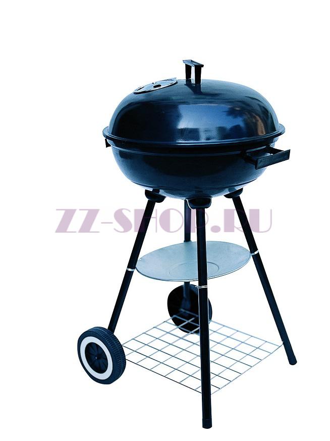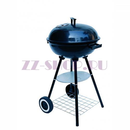 Гриль-коптильня круглого сечения на колесиках с крышкой,с пластиковыми ручками, 2 нижние полочки, 2 регулятора подачи воздуха, высота 75 см, диаметр 44 см, крышка черного цвета.