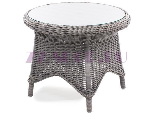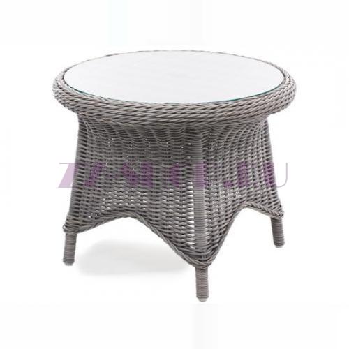 Маленький приставной круглый столик 5634-7, выполненный из искусственного ротанга серого цвета с патиной на алюминиевом каркасе.