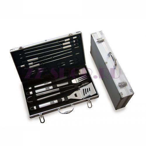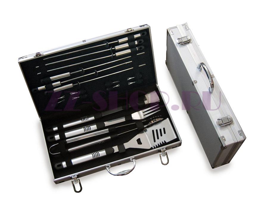 Набор для гриля в металлическом чемодане из 18-ти предметов с деревянными ручками 50 * 25 * 8 см.