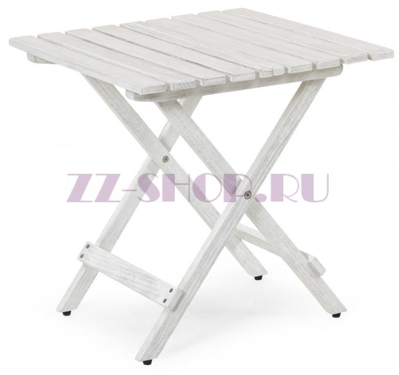 Стол из акации Chaplin, приставной, раскладной, цвет белый антик, размер 50x50 см, высота 51 см, отличное дополнение к стулу-шезлонгу Chaplin.