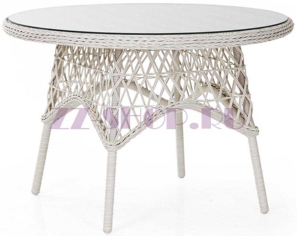 Круглый стол 5694-5 из коллекции Beatrice, выполнен из искусственного ротанга белого цвета.