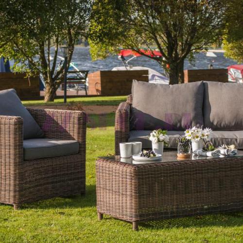 - Подушки выполнены из водостойкой полиэфирной ткани для защиты мебели от дождя и солнца