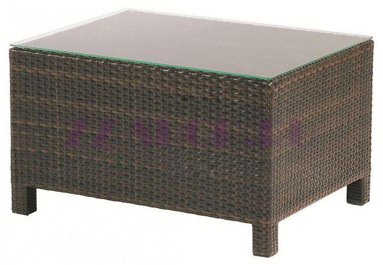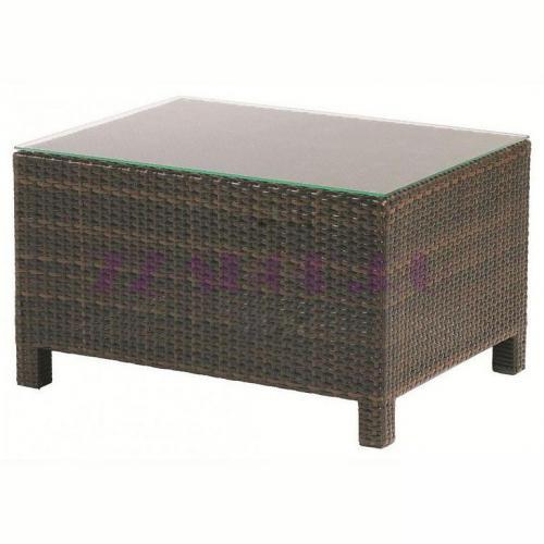 Плетеный стол Venedig, искусственный ротанг/стекло, алюминий, коричневый, размеры 80х60х48 см.