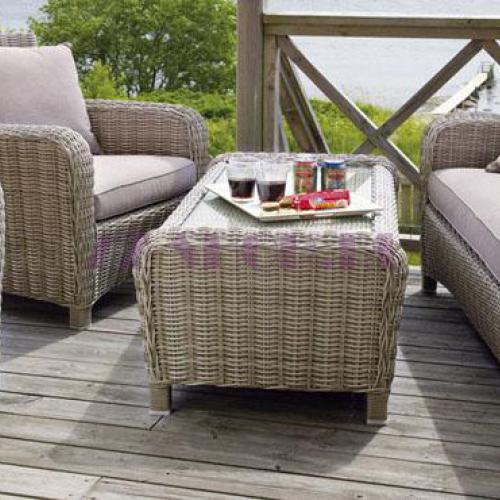 Он выполнен из искусственного ротанга на алюминиевом каркасе.