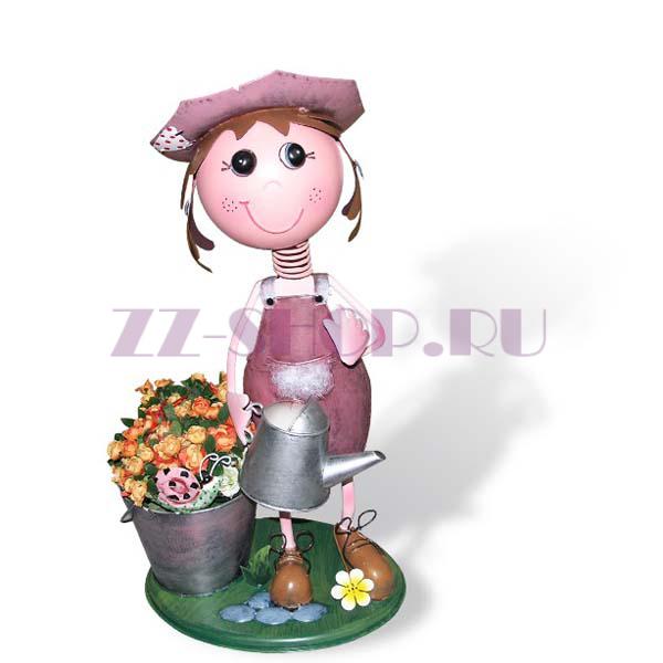 Уличная подставка для цветов - кашпо Девочка с лейкой улыбается