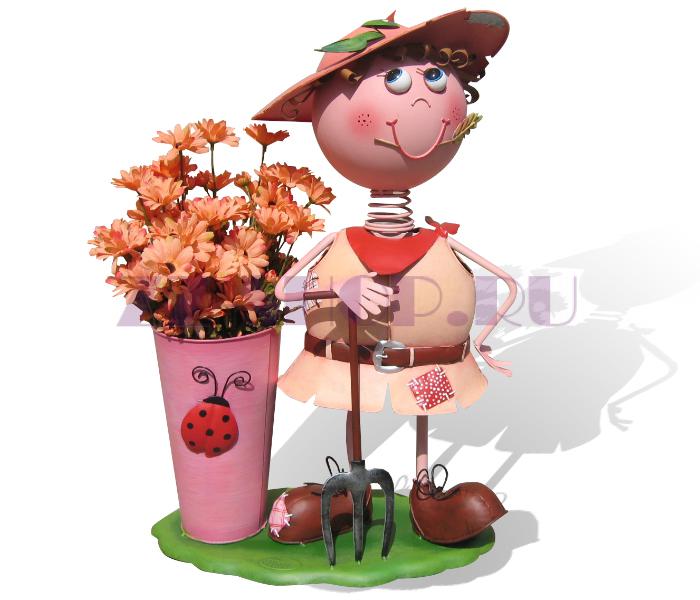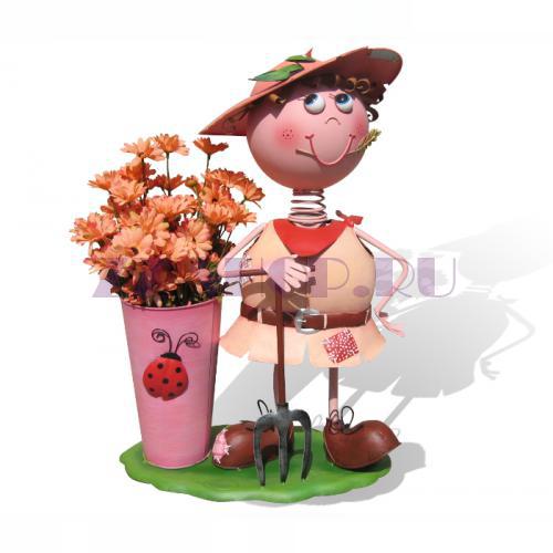 Уличная подставка для цветов - кашпо Девочка смеется в панаме с гусями