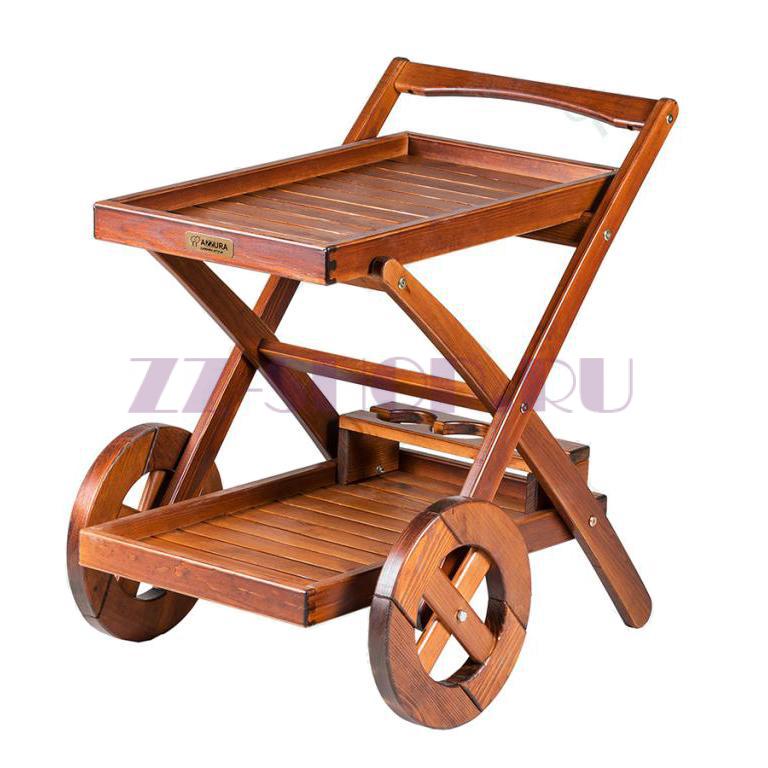 Сервировочная тележка Regina 703022 выполнена из массива сосны, окрашенного в цвет капучино.