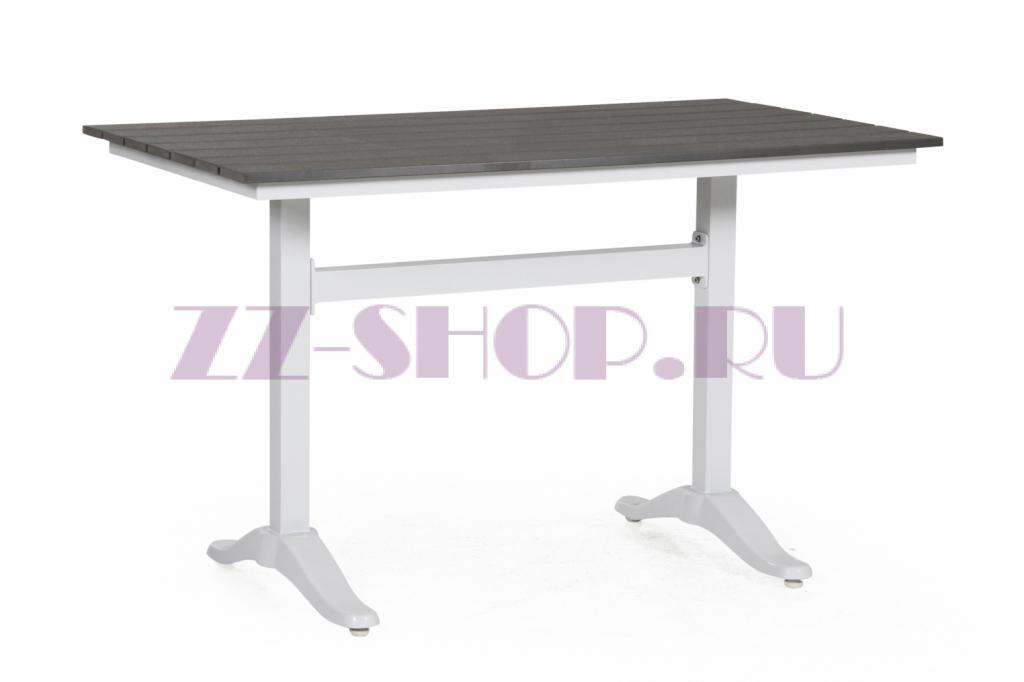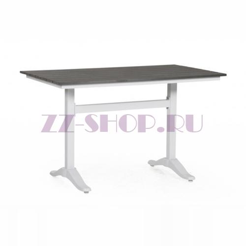 Очень удобная серия столов для кафе с подстольем из лакированного алюминия белого цвета и столешницей из пластика серого цвета с имитацией дерева.- brafab