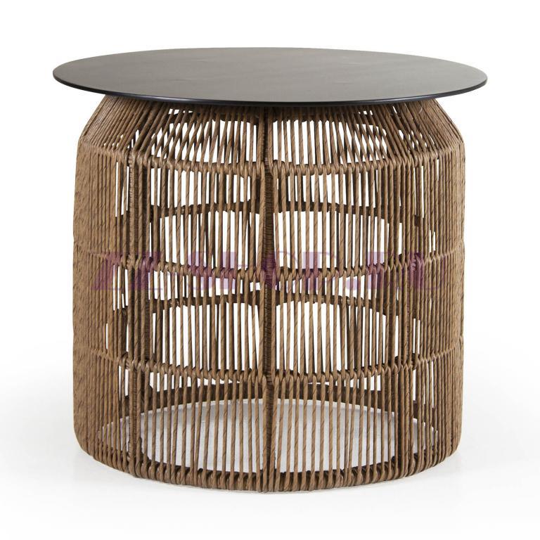 Приставной столик Pamir из синтетического ротанга и столешницей из алюминия.Три размера можно использовать в качестве наборов или приставных столиков для других предметов из ротанга от Brafab, таких как Pembroke и Sunside.