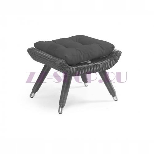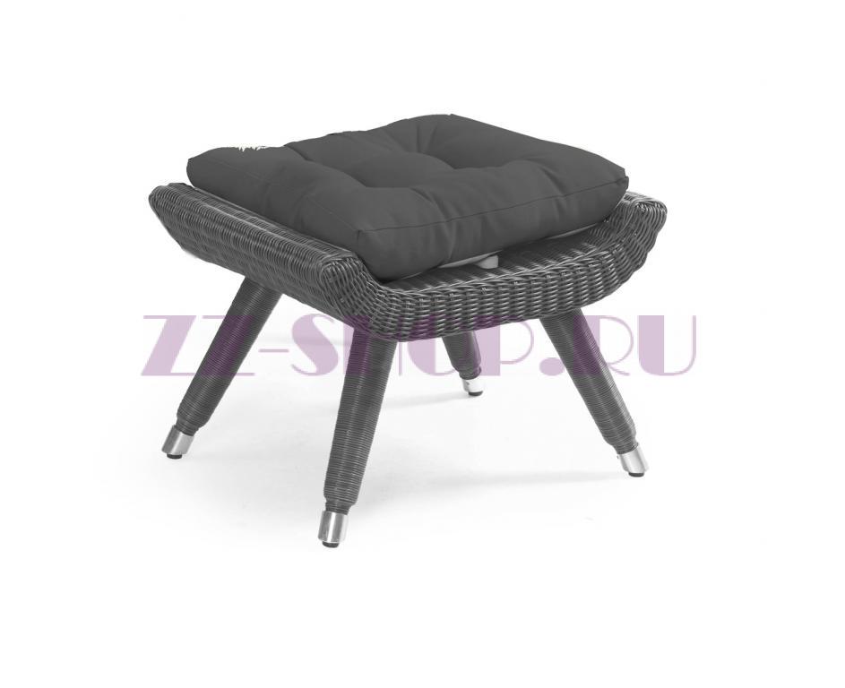 Он выполнен из искусственного ротанга серого цвета на алюминиевом каркасе.