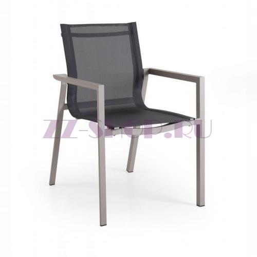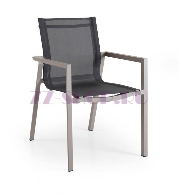 Delia - практичное штабелируемое кресло, выполненное из матового лакированного алюминия бежевого цвета с черным текстиленом.- brafab