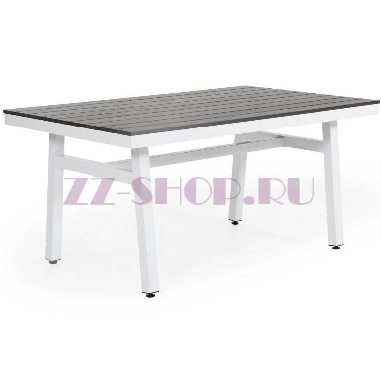 Стол обеденный Bergerac имеет каркас из алюминия и столешницу серого цвета из nonwood.