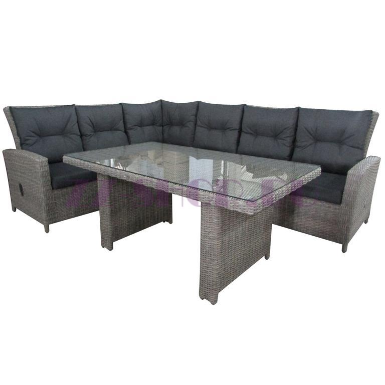 Угловой комплект плетеной мебели San Marino состоит двух секций и высокого обеденного стола.