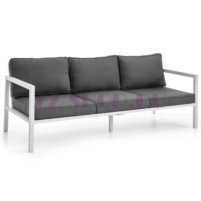 Belfort трехместный диван в белом цвете.Belfort - Современная мебель на алюминиевом каркасе с серыми удобными подушками.
