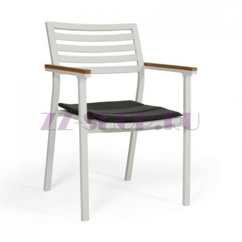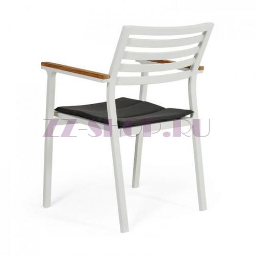 Кресло обеденное Olivet из белого алюминия с тиковыми подлокотниками.Подушка серого цвета в комплекте.