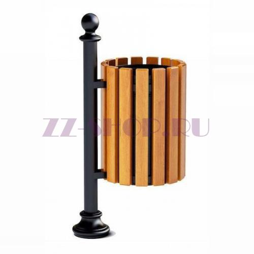 Парковая урна на столбике, оборудованная съемным ведром. Размеры и вес урны обеспечивают ее сохранность. Данная модель популярна при обустройстве больших классических парков в сочетании со скамейками на чугунном основании.