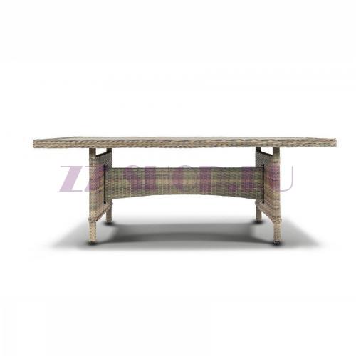 - Сочетания плоского (подстолье) и круглого (столешница) искусственного ротанга серо-соломенного оттенка