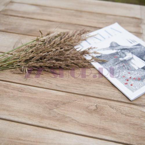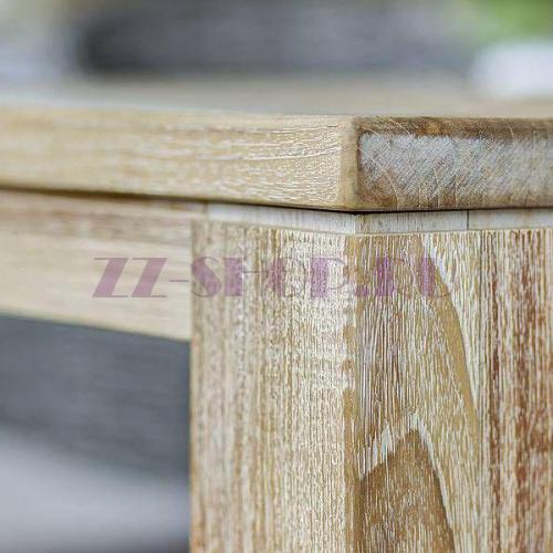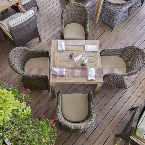 Основание квадратной формы с закругленными углами из искусственного ротанга венчает прочная стеклянная столешница толщиной 5 мм.