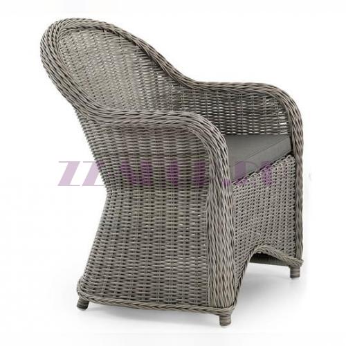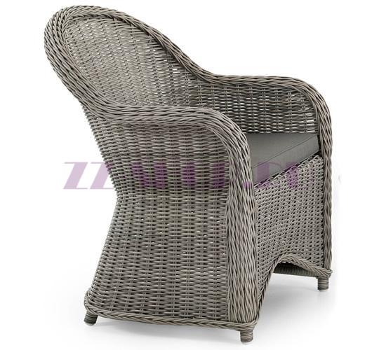 Кресло 5631-7-7 с подлокотниками классической формы, выполненное из искусственного ротанга серого цвета с патиной на алюминиевом каркасе.