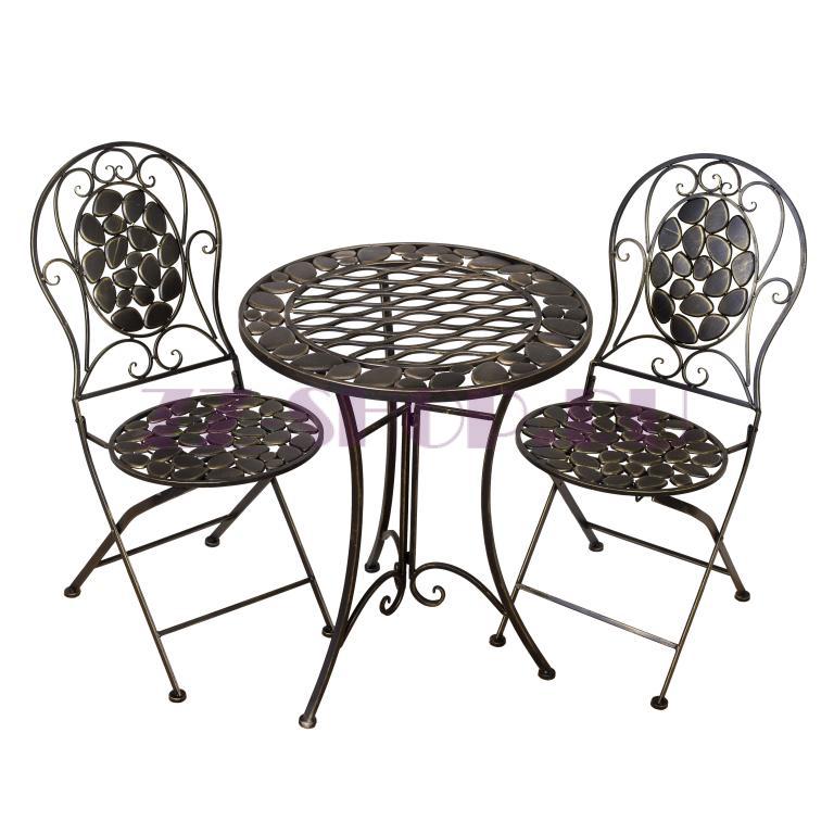 Комплект кофейный Галька с узором (стол + 2 стула), цвет Бронза