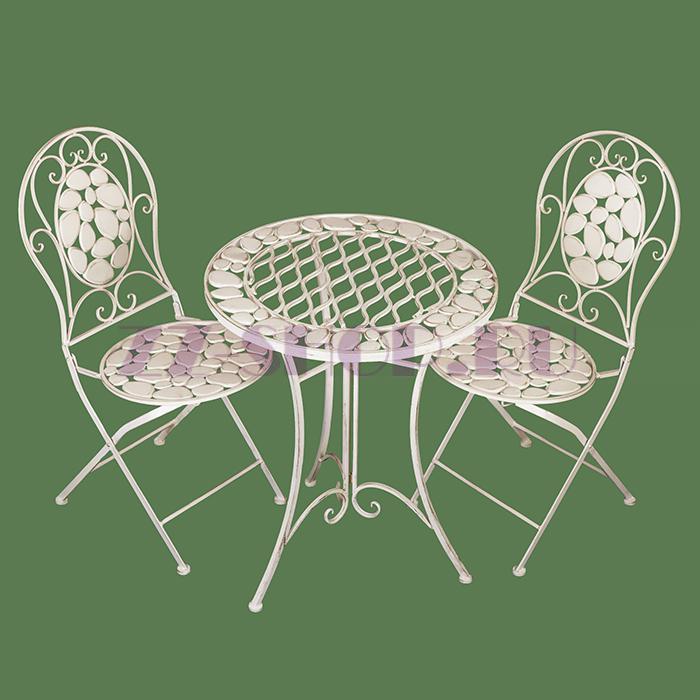 Комплект кофейный Галька с узором (стол + 2 стула), цвет Белый