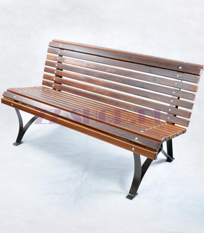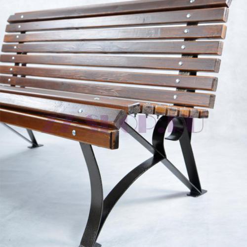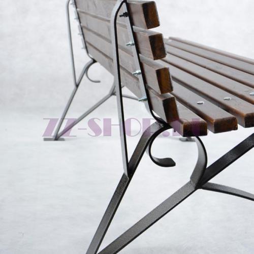 - Скамейка изготовлена из стали и дерева.
