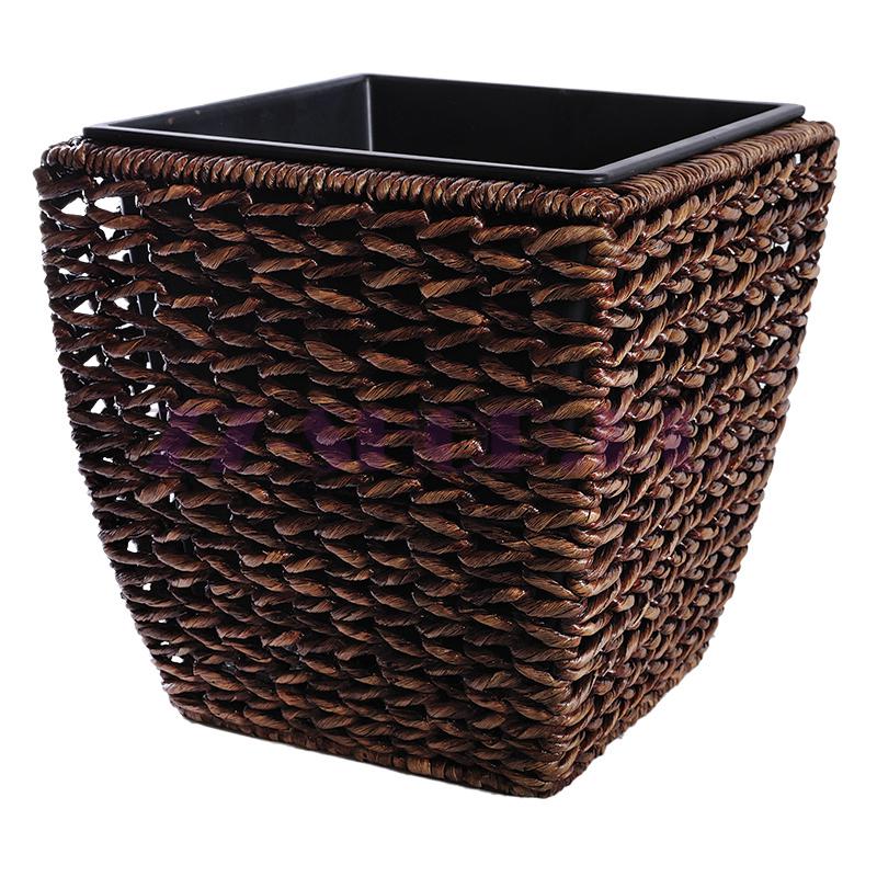 За счет применения плетеной фактуры кашпо получают не только дополнительную декоративность, но и легкость.