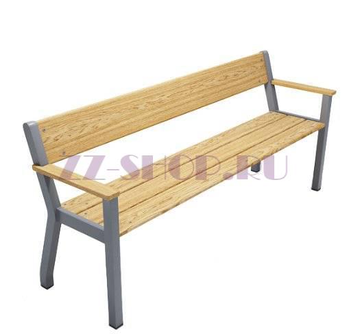 Скамейка "Фонс" с деревянными подлокотниками обладает удобным посадочным местом.