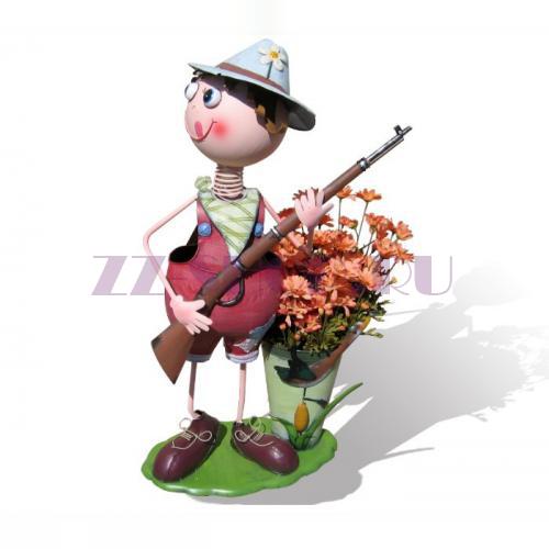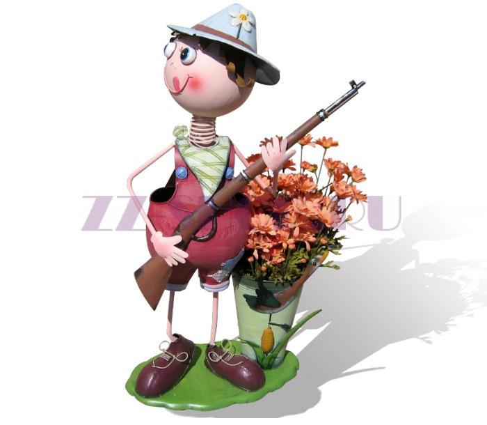 Уличная подставка для цветов - кашпо Охотник с ружьем