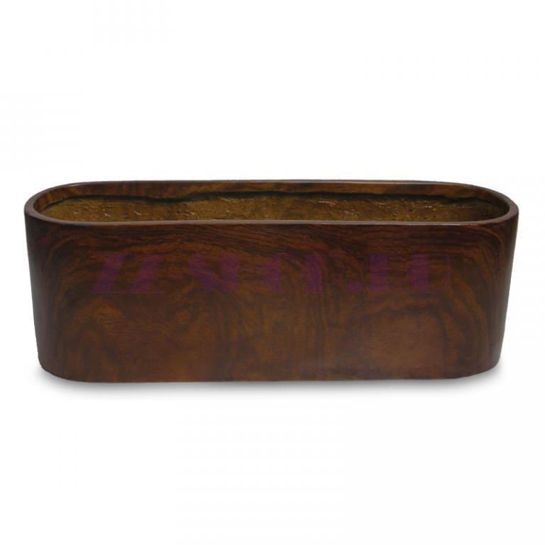 Чтобы показать древесную красоту в фактуре кашпо Wood Look, дизайнеры используют ламинирующую пленку. С помощью технологии гидрографики основа кашпо, выполненная из стекловолокна и цемента, покрывается пленкой. За счет использования современных материалов кашпо легкие и практичные.