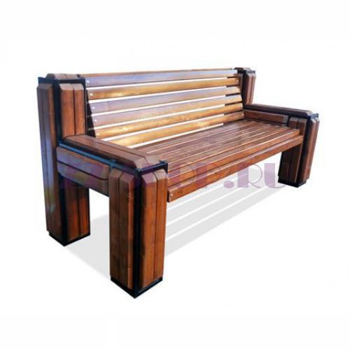 Сиденье и спинка: Брус из хвойных пород древесины - сосна/ель (варианты исполнения: лиственница, композитные материалы).