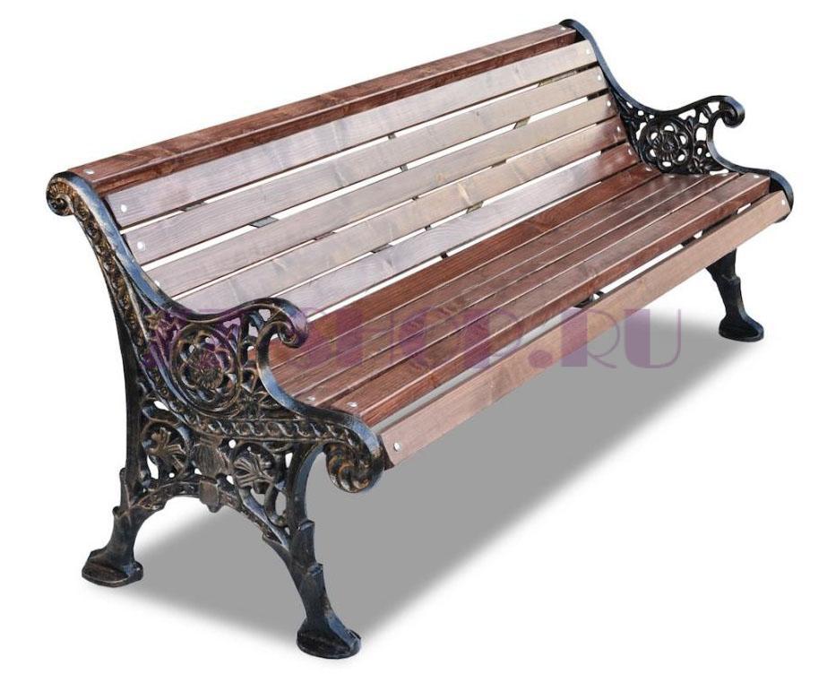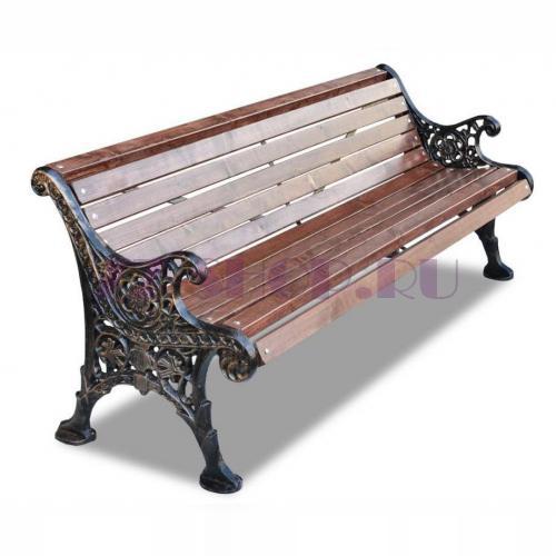 Скамейка сочетает в себе основательность, которую придают чугунные опоры, и легкость, которая достигнута за счет неповторимого ажурного рисунка.