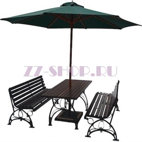 Зонт, который входит в комплектацию, позволит отдыхать за столом даже в дождливую погоду.