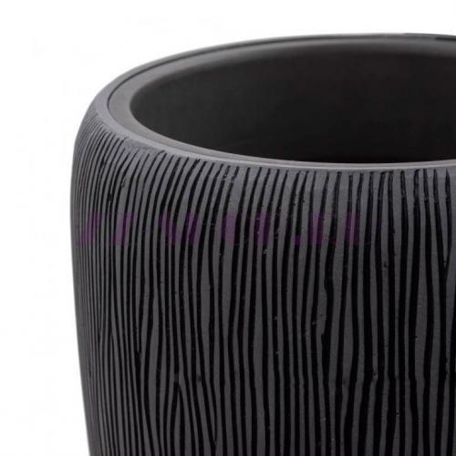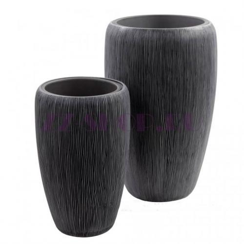 Универсальный высокий вазон для цветов - прекрасный вариант для озеленения современной квартиры или офиса. Классическая форма цветочного горшка и сдержанный графитовый цвет позволяют легко интегрировать объект в любой интерьер. Рельефная фактура в виде вертикальных тонких линий добавляет динамичности дизайну кашпо.