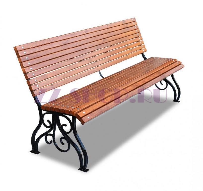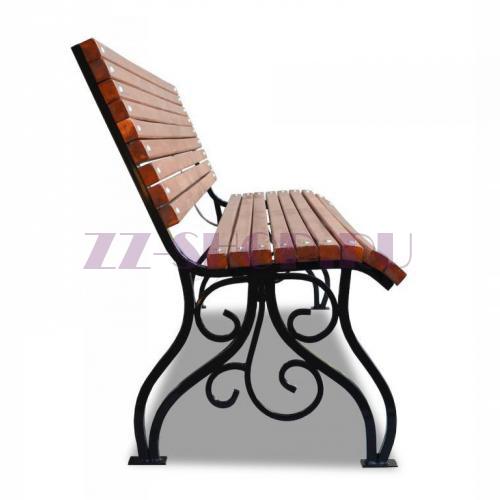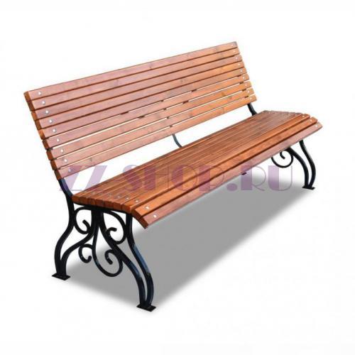 Скамейка «Вена» притягивает взгляды своими декоративными коваными элементами изящных опор.