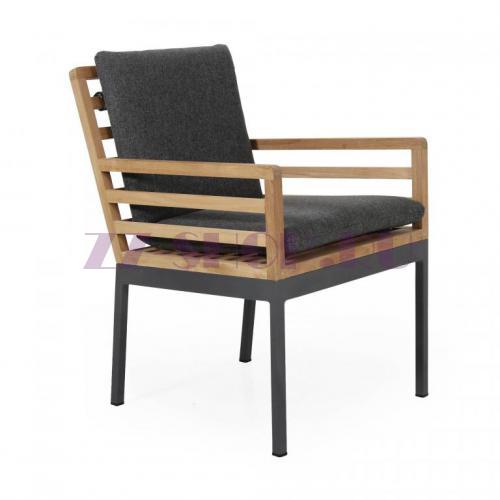Zalongo - элегантная обеденная группа с сочетании тика и серого лакированного алюминия.Прямые тиковые ребра усиливают впечатление группы об элегантности и качестве.