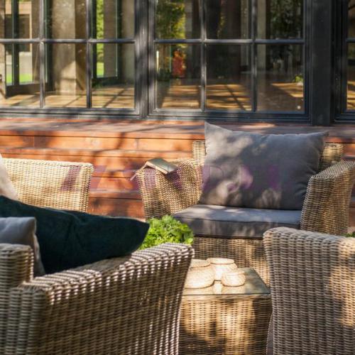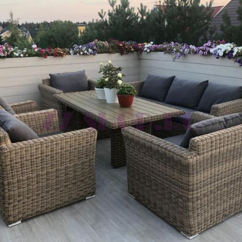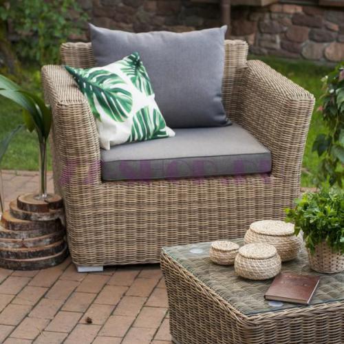 - Высококачественный и неприхотливый искусственный ротанг серо-желтого оттенка