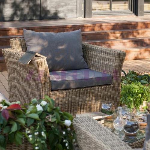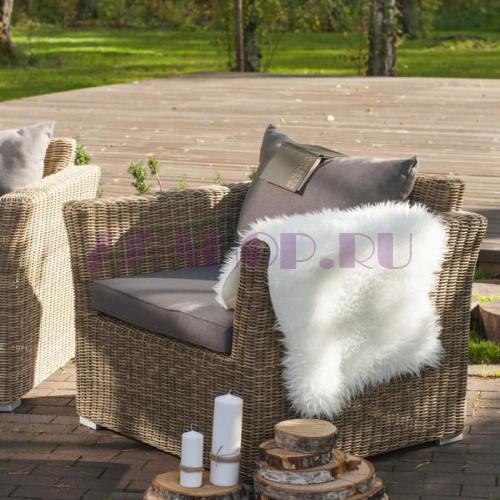 - Подушки выполнены из водостойкой полиэфирной ткани для защиты мебели от дождя и солнца