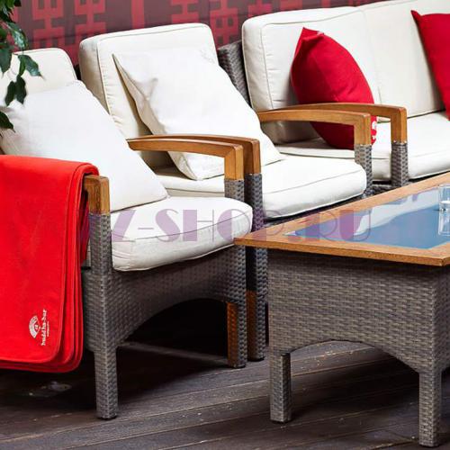 Каркас изделий выполнен из алюминия, что гарантирует продолжительный срок службы. Изящно изогнутые линии подлокотников и ножек, также оплетенные ротангом, добавляют элегантности.