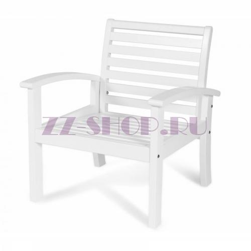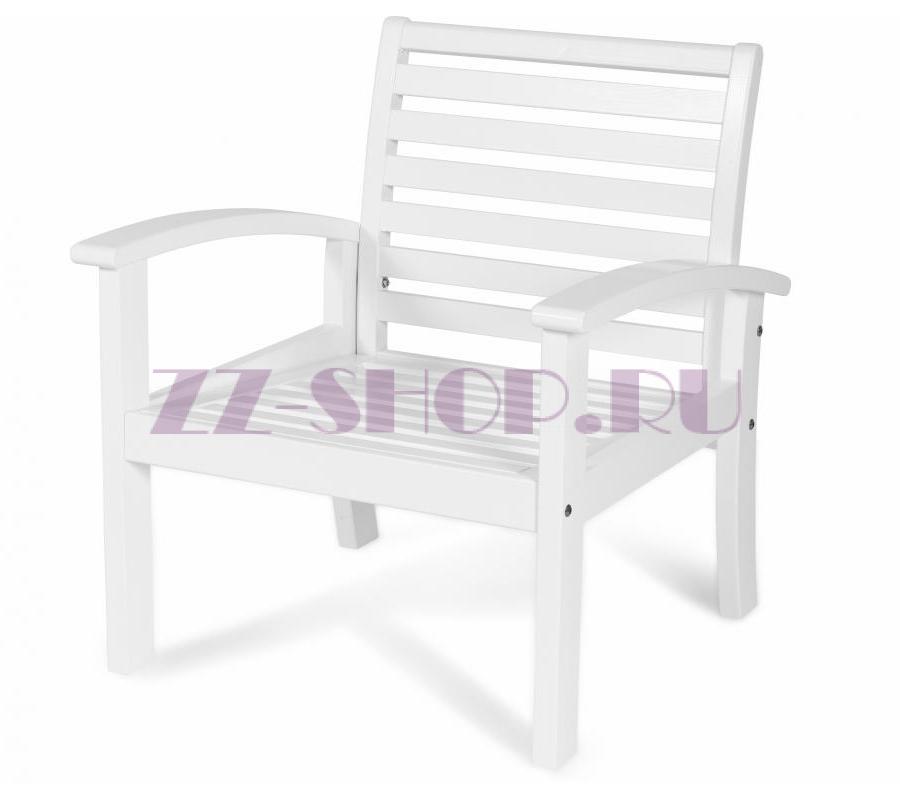 Кресло с подлокотниками из коллекции мебели для лаунж-зоны Visby 6108, оно выполнено из массива сосны, окрашенного в белый цвет.