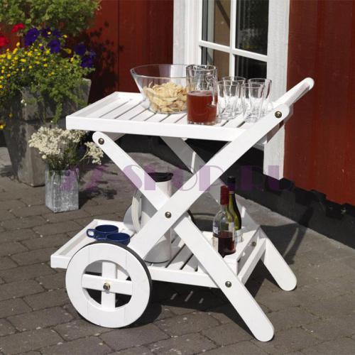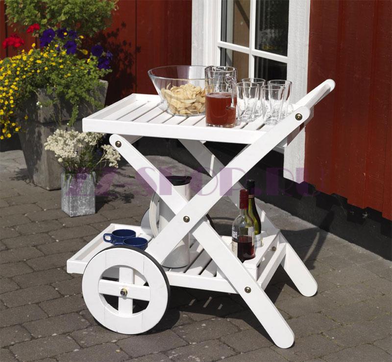 Сервировочная тележка Butler 773046 изготовлена из массива сосны, окрашенного в белый цвет.
