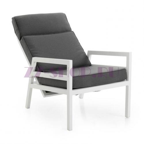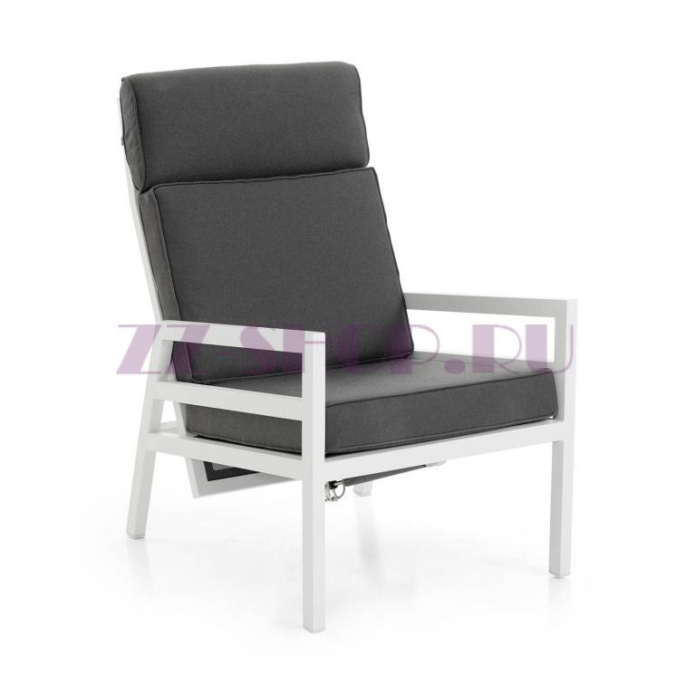 Удобное Кресло с регулируемой спинкой изготовлено из белого алюминия с текстилен серыми подушками.- brafab