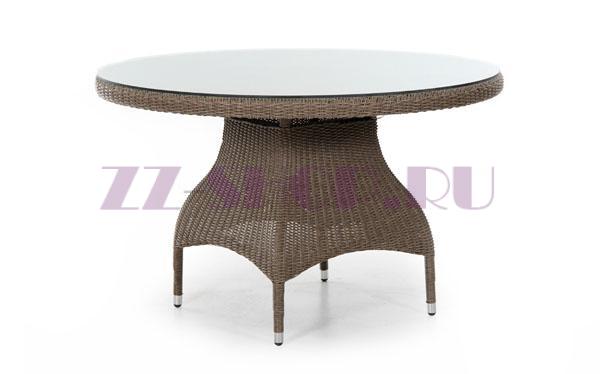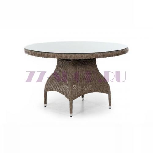 Круглый стол 35671-73 выполнен из искусственного ротанга натурального цвета на алюминиевом каркасе.