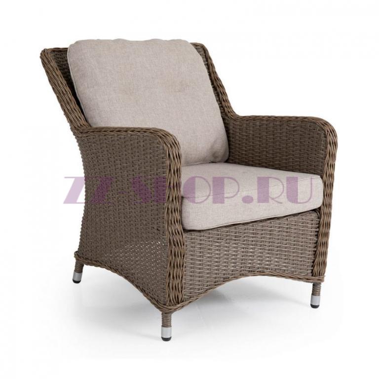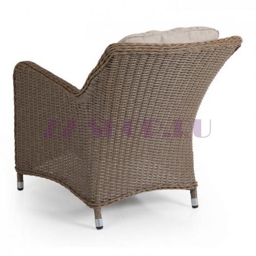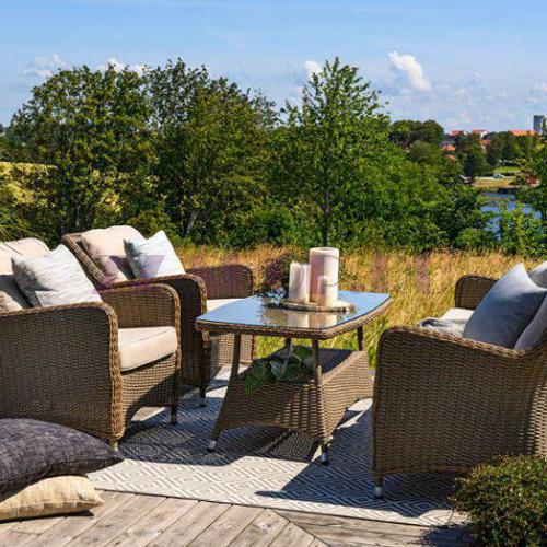 Hornbrook - это группа в стиле ретро из искусственного ротанга натурального цвета с бежевыми подушками.